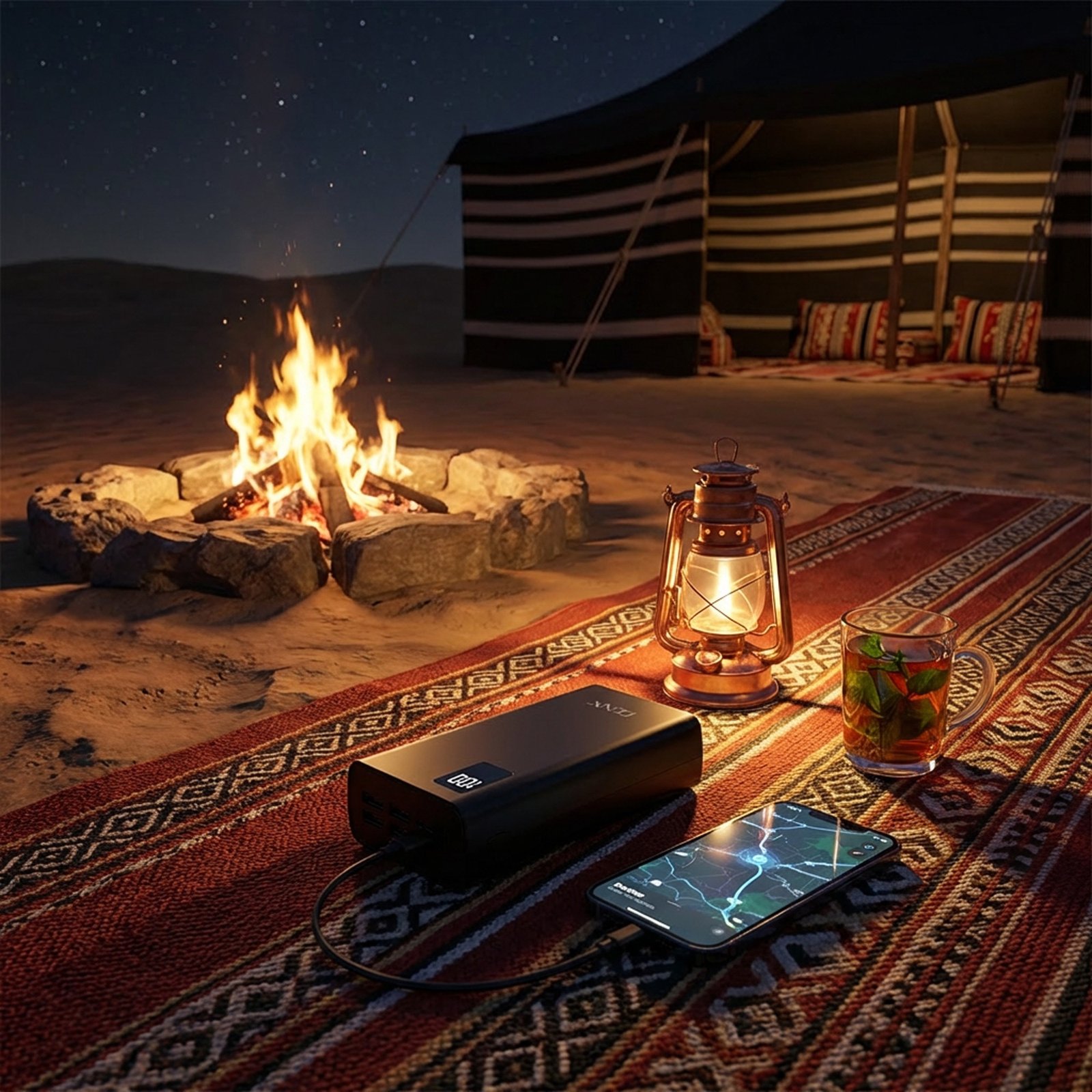 - باور بنك كبير متوافق مع معظم الأجهزة الإلكترونية الحديثة بما في ذلك الهواتف الذكية والسماعات اللاسلكية والأجهزة اللوحية.