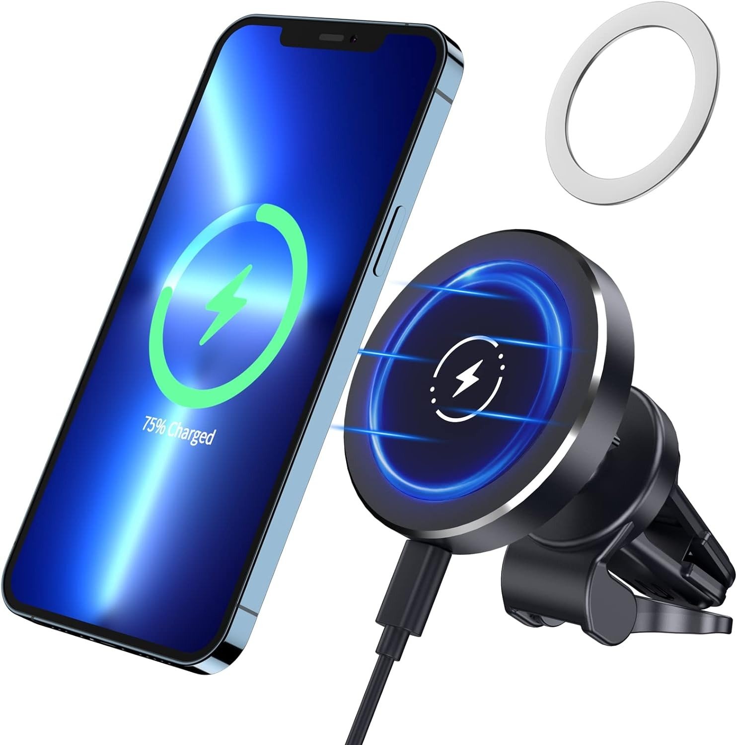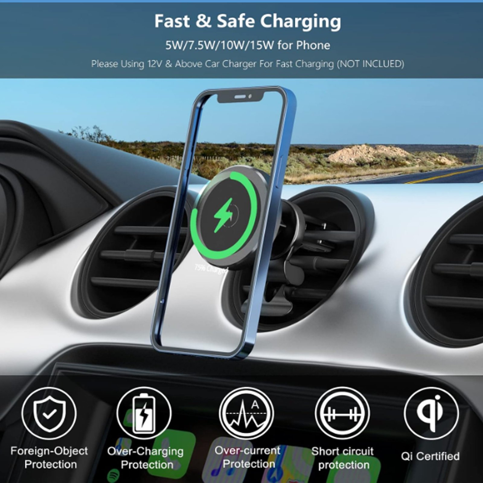 - تصميم حامل هاتف للسيارة مغناطيسي MagSafe-style يثبت الهاتف بسرعة وأمان دون الحاجة للأيدي.