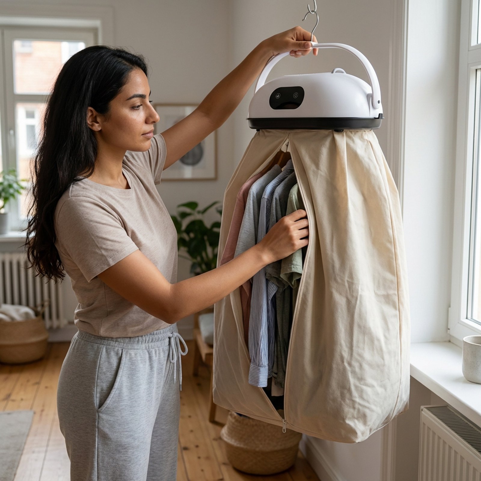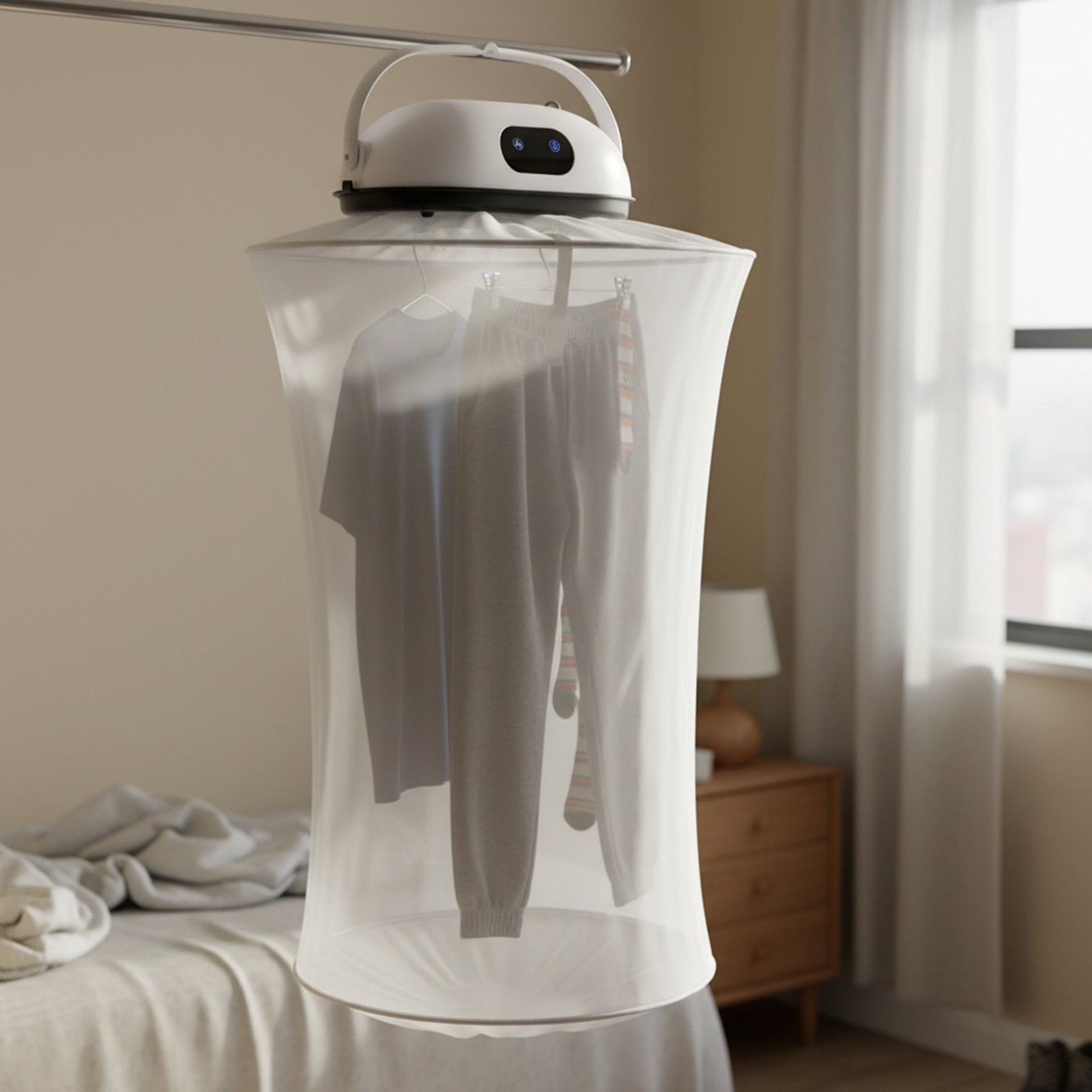 - المزايا: تجفيف سريع وآمن للملابس دون الحاجة لغسالة كبيرة