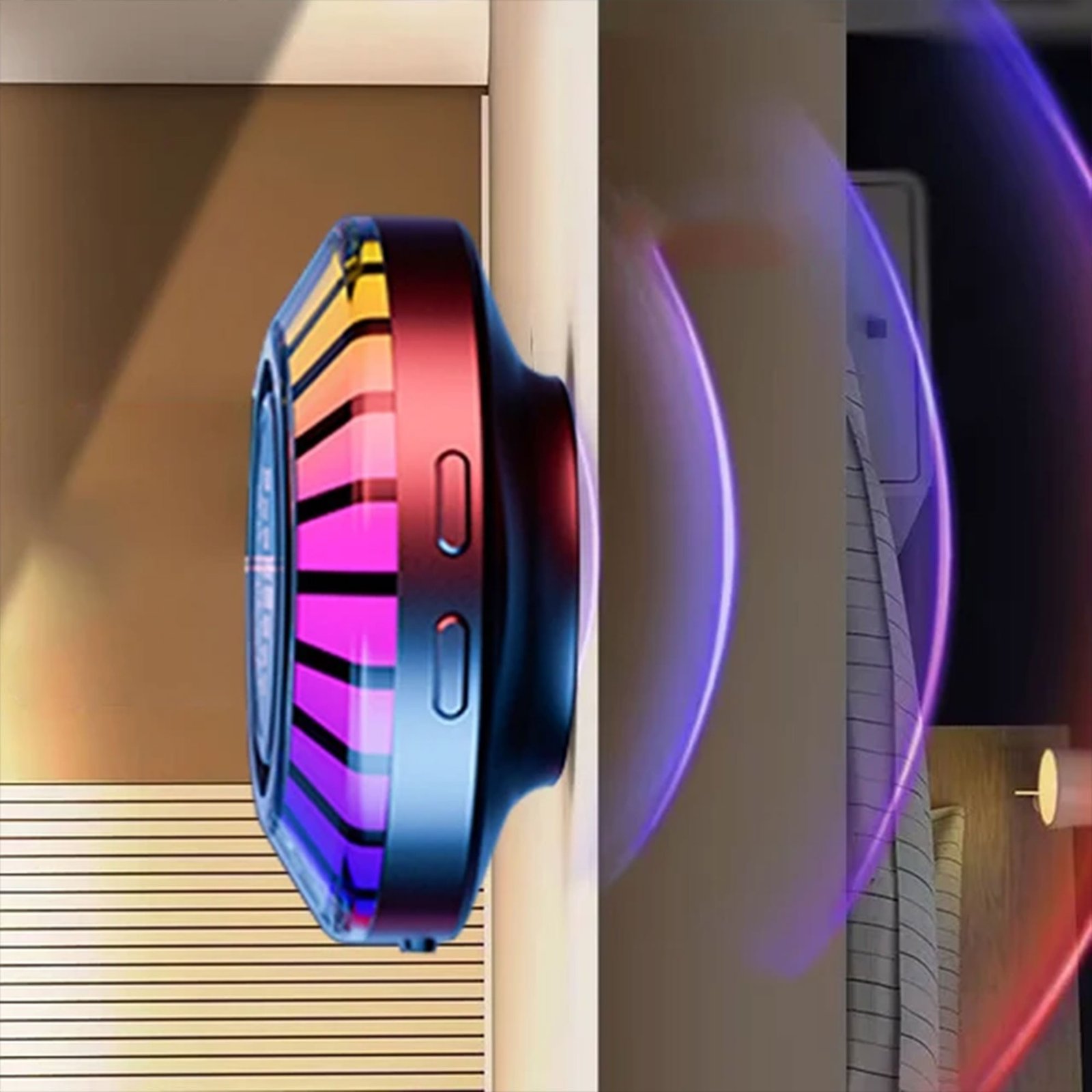 مكبر الصوت صغير اللاصق المحمول يجمع بين الصوت القوي والتصميم المبتكر، مع إضاءة RGB قابلة للتخصيص تتناغم مع إيقاع الموسيقى، مما يخلق تجربة صوتية وبصرية ممتعة في أي مكان.